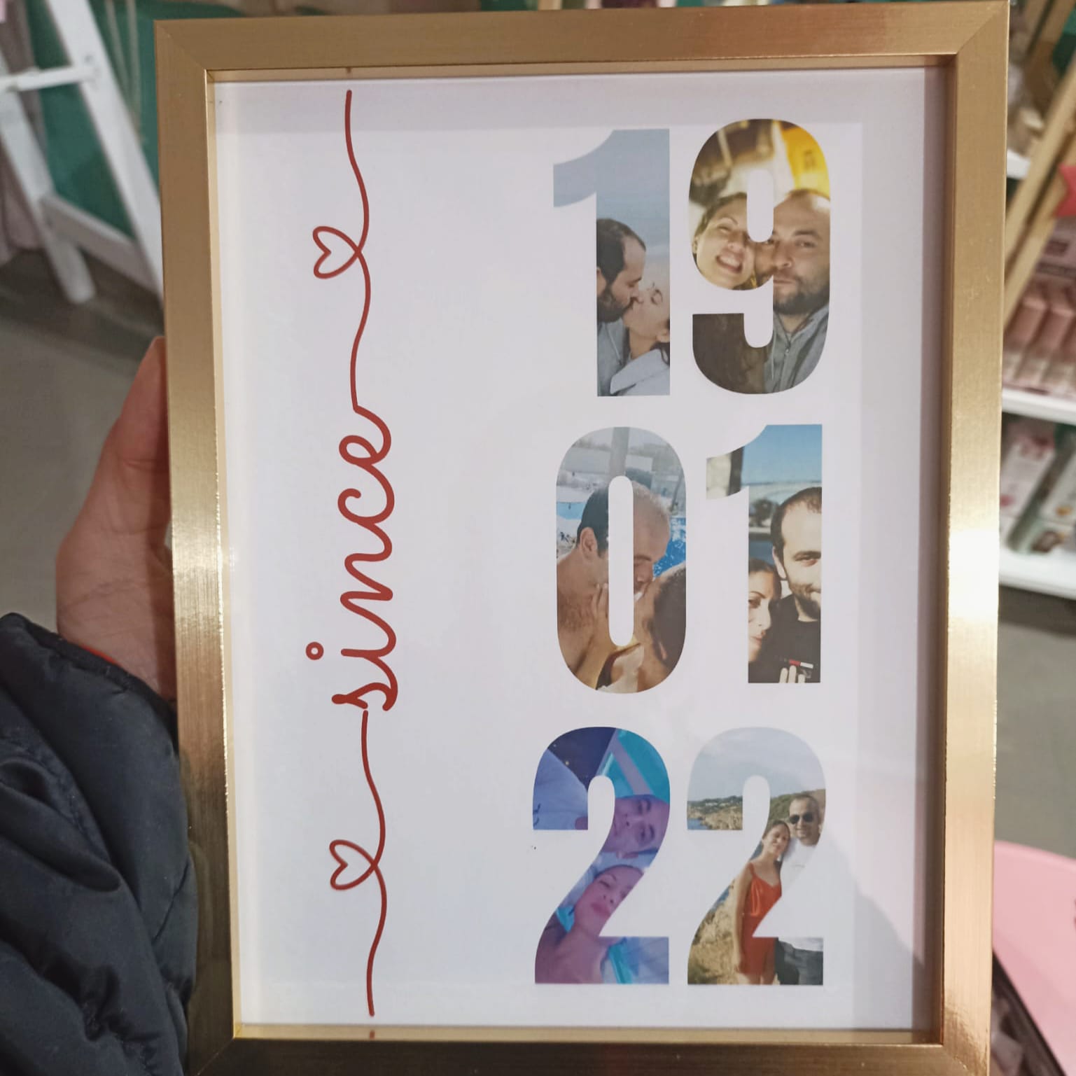 Este porta fotos é feito por encomenda. Envie a data ( DD-MM-AA) desejada e as fotos (envie pelo menos 9 fotos para permitir melhor combinação entre foto e número) por e-mail : lojadecorartjac@gmail.com ou entre em contato pelas nossas redes sociais.